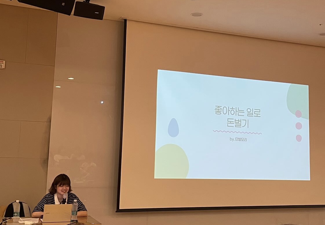 p.s. 아래 사진은 이번 토요일 '좋아하는 일로 돈 벌기' 강연 전 모습이야. 강의 참석하신 분이 찍어주셨지모야?! ㅎㅎ 후기 받을 때마다 제일 뿌듯한 강의!