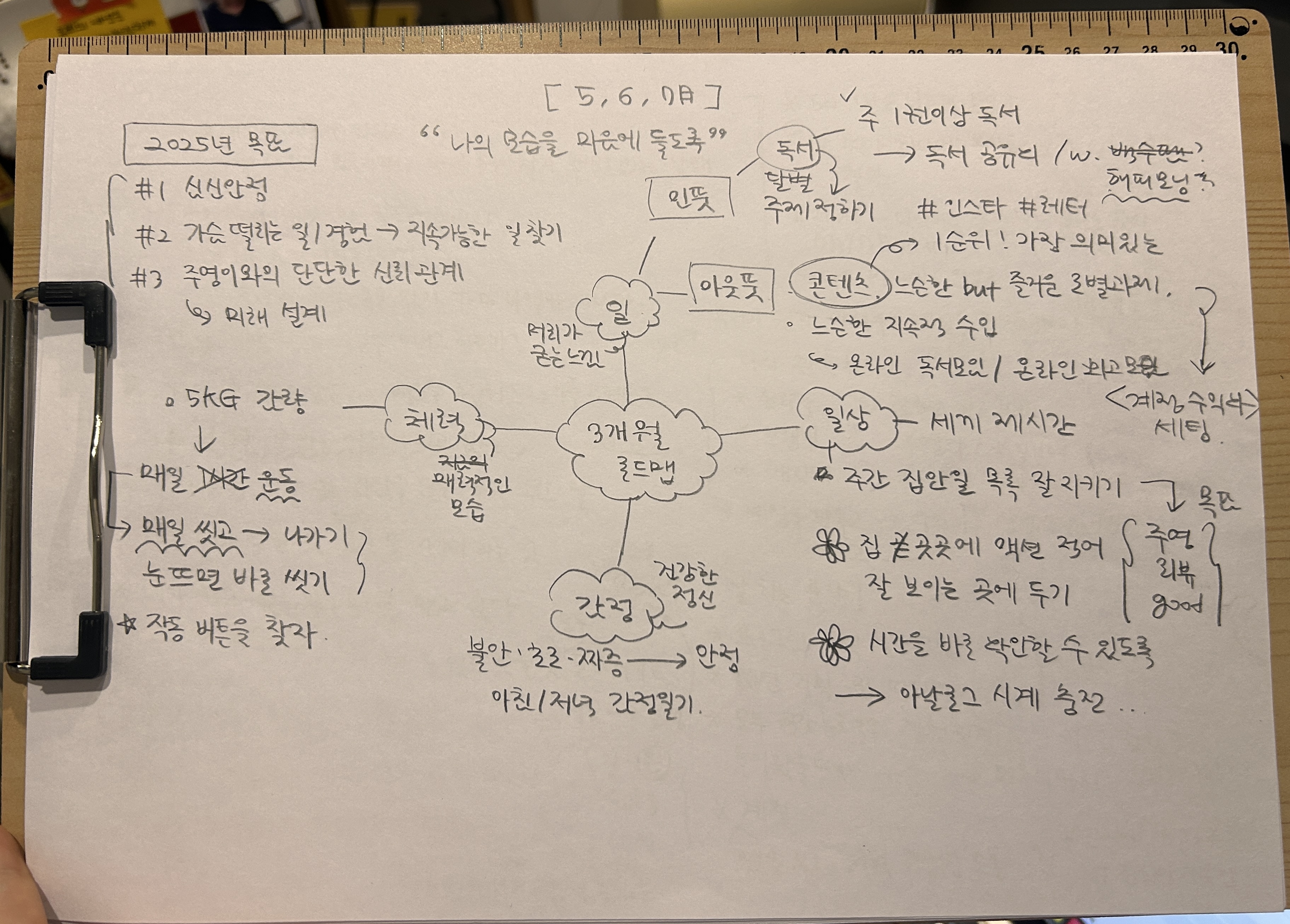 (아래 이미지는 내가 쓴 것 중 3개월 계획 페이지! 고민들 쭈욱 나열한 것들도 몇 장 더 있어 ㅎㅎㅎ) |