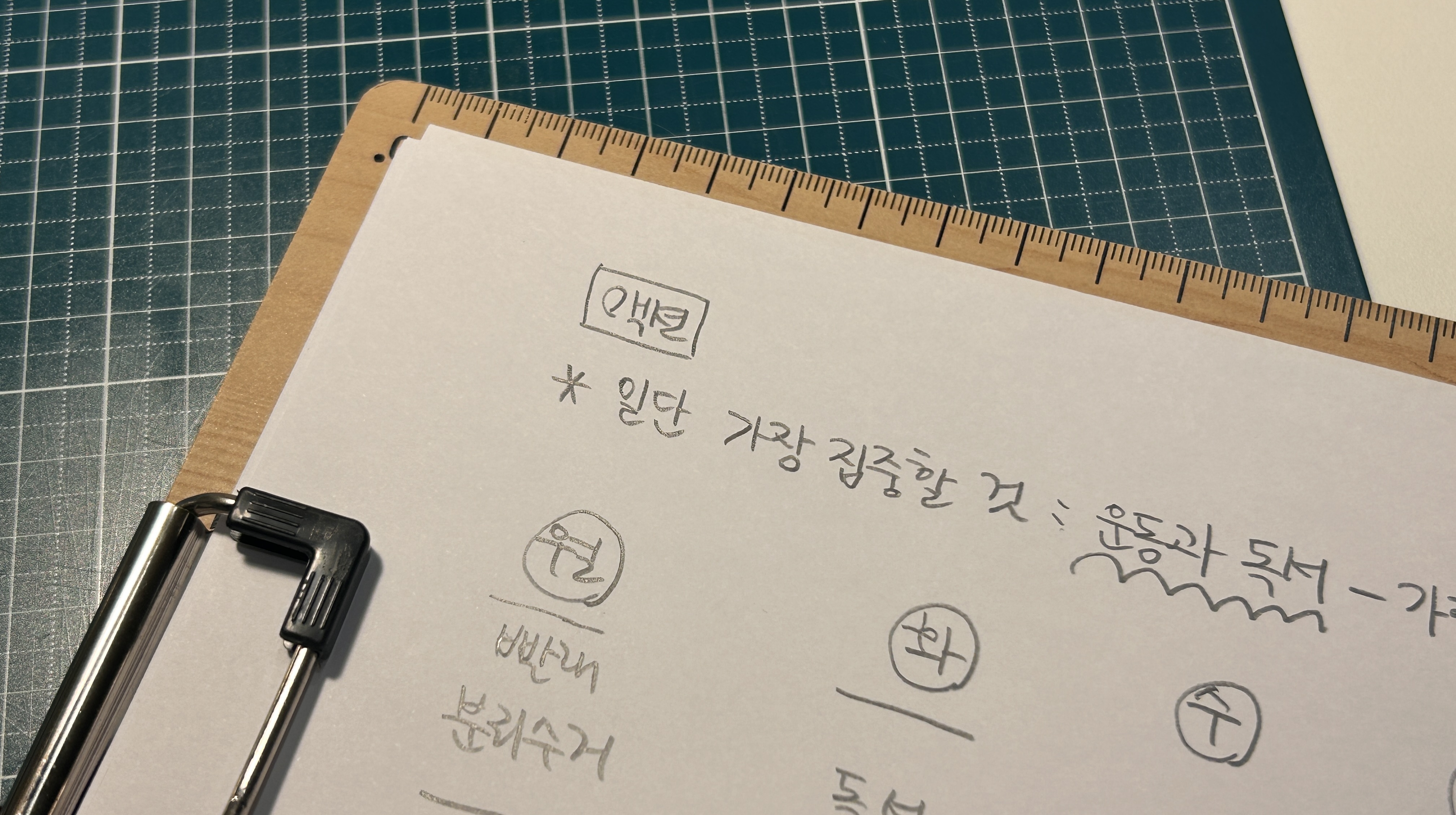 그래서 자기 전 혼자 거실에 누워 앞으로 나는 왜 지금의 시간을 갖게 된 걸까, 앞으로 뭘 하고 싶은 걸까, 나에게 솔직해 지는 시간을 가졌어. 지금 내 상태에 대해서 그리고 3개월 간 내가 무엇에 집중하고 싶은지 등등 한 번 쭈욱 적어봤지. 그리고 이를 기반으로 다음 날 나는 뭘 하고 싶은지도 간결하게 적어봤어. 그렇게 눈에 보이게 나의 상태와 미래를 시각화 하니 마음에 불안이 가라앉더라. 분명 초반에는 이 시간을 갖는 이유가 명확했었는데, 어느 순간 잊혀졌다가 다시 한 번 상기하는 시간을 가진거지.