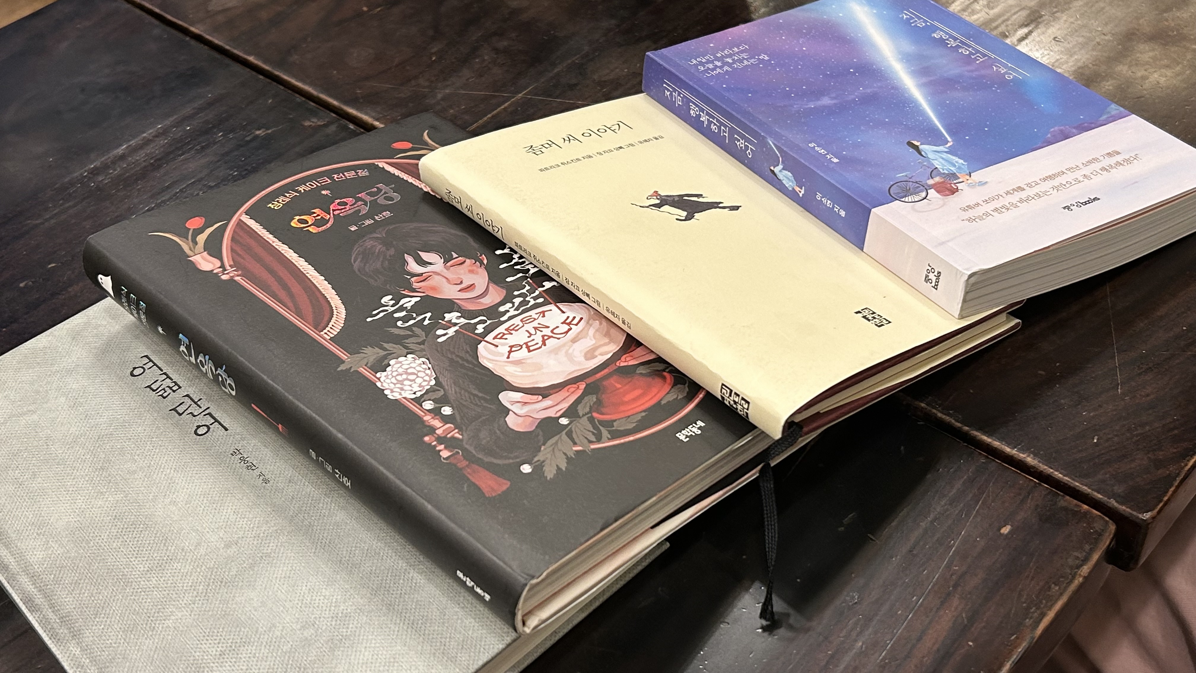 이번 주는 내가 개인적으로 운영하고 있는 랑랑독서클럽 회원들과 영화를 보러 갔어. 영화관 근처에 중고 서점이 있어서, 서로에게 주고 싶은 책을 구매해 서로에게 선물했지. 공주도 친구들이랑 한 번 해봐! 생각보다 재미있더라고 ㅎㅎㅎ 책과 꽃 선물은 항상 낭만 넘치는 일인 것 같아. ㅎㅎ (내가 받은 책은 '연옥당', 내가 선물한 책은 '좀머 씨 이야기'였어)