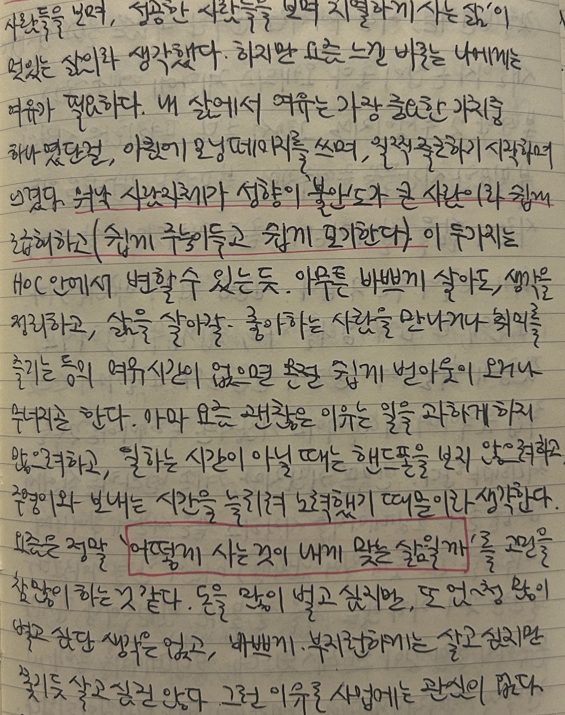 아래는 내가 회사를 그만두기 몇 개월 전에 적었던 모닝페이지의 일부인데, 한 번 봐줄래? |
